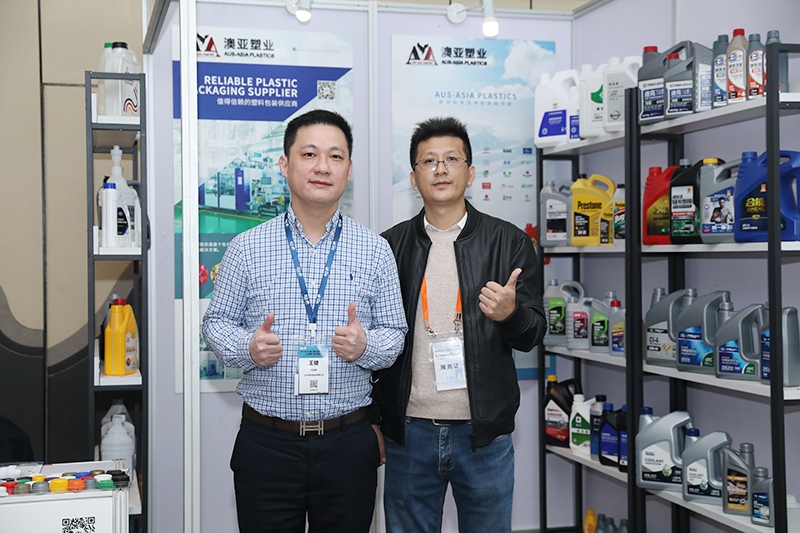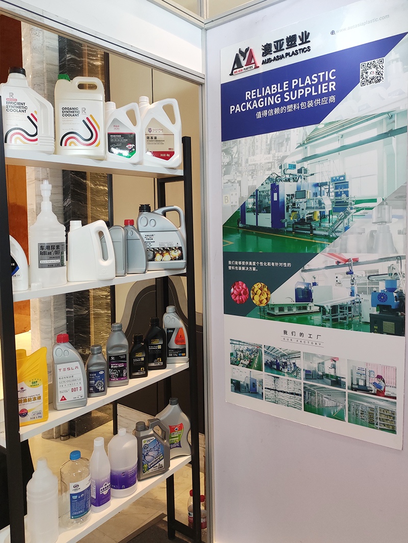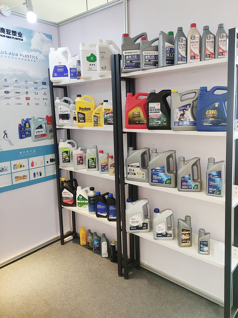 在江蘇91香蕉视频在线观看塑業有限公司展台,陳列展出(chū)了多款公司主營產(chǎn)品,包括防凍液桶、潤滑油桶、製動液(yè)桶、車用尿素桶等(děng)。