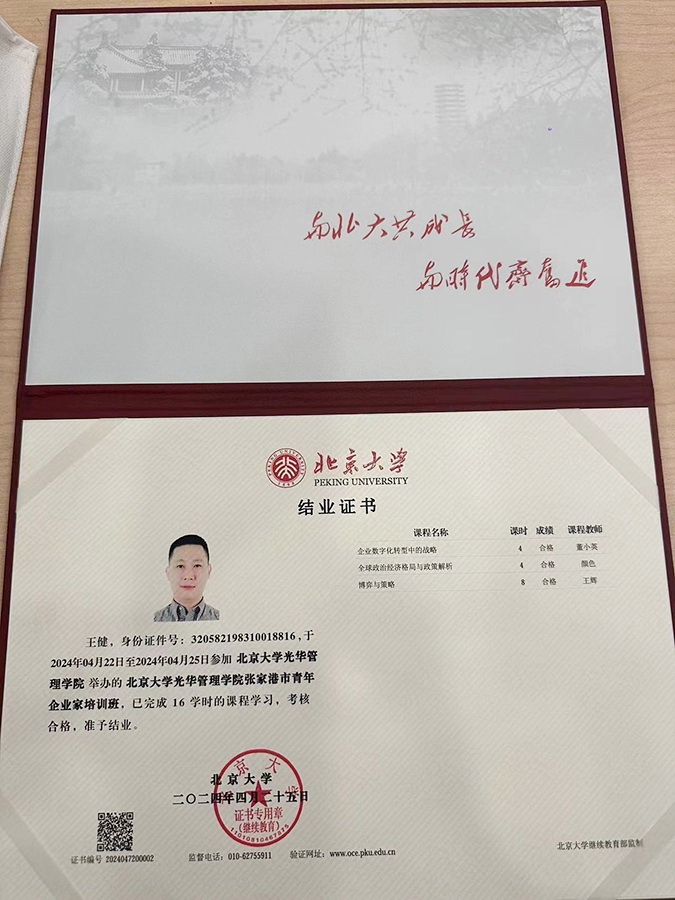 青商會組織(zhī)的每次高校研修學習都能給予我新的思維和靈感。今年在北大光華,關於信息技術改革、數字化轉型的課程讓我對公司發展有了(le)新的思考。紙上得來終覺淺,絕知此事要(yào)躬行。充實又幹貨滿滿的課程結束了,接下來(lái)要用心消化課程內容,在經(jīng)營實踐中曆練。